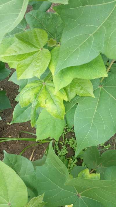 కిందనుండి ఆకులు ఎర్రబడి పై పైకి వస్తున్నాయి అలాగే తెల్లదోమ ఆకుపచ్చ దోమ వుంది.