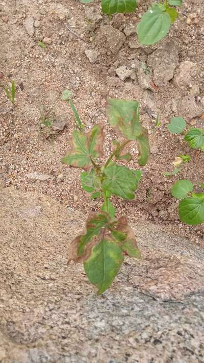 Cotton Leafhopper Jassids is correct Tufail Abbas 😊 The plant is in complete starvation of nitrogen because soil texture indicates that it has very negligible amount of organic matter content, specially nitrogen.