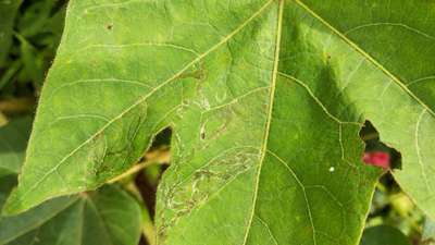 పత్తి ఆకులు ముడుచుకుంటూ ఆకుల చివరలు పసుపు రంగులోకి మారుతుంది.అక్కడక్కడా ఆకులు వివిధ రంగులోకి మారుతున్నాయి.దీనికి సరైన పరిష్కారాన్ని చెప్పండి