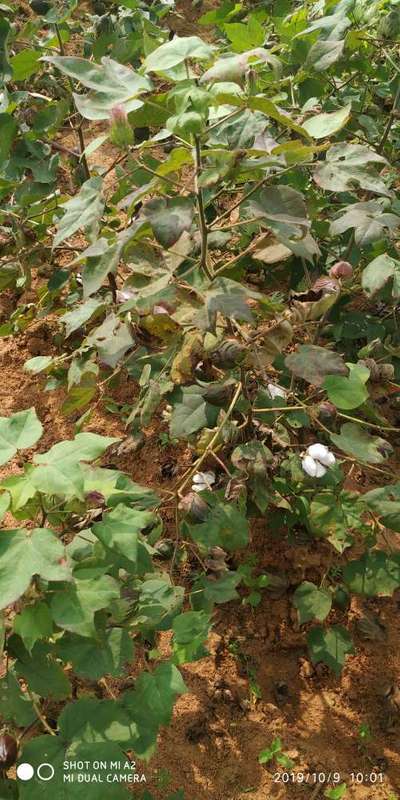 పత్తి లో ఆకులు పసుపు కలర్ వచ్చి ఆకులు ఇట్లా వాడిపోతున్నాయి ఏమి మందు కొట్టాలి మరియు తెల్ల దోమ ఉంది