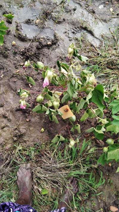 Ramanjaneyulu గత నాలుగు రోజుల నుండి కురుస్తూన్న వర్షాల వల్ల పత్తి పంట లో మొక్కలు అక్కడక్కడ వడలిపోయి చనిపోయినట్లు ఉన్నచో, రైతులు కంగారుపడొద్దు. దీనిని wilt (వడలు తెగులు) అంటారు. 1. ముందుగా చేను లోని నీటిని కాలువల ద్వారా తీసి, కాపర్ ఆక్సీ క్లోరైడ్ 3గ్రా/lit నీటికి కలిపి నాజిల్ తీసి చెట్టు మొదలు లో పోయాలి. 2. తరువాత agrominmax + Magnesium -150 gms/acre కలిపి పిచికారి చేసుకోవాలి.