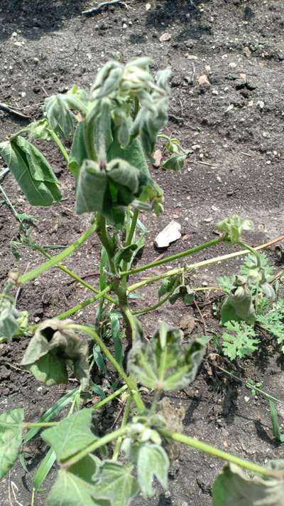 మా పొలం పత్తి మొక్క వర్షాలు కురిసే నిన్నటి వరకు ఐదు రోజులు నా ప్రశ్న ఈ ఫోటోలో ఉన్న పత్తి మొక్క ఇలా ఎందుకు అవుతాయి