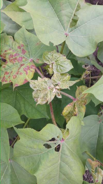 మా పత్తి పంటలో పత్తి మొక్కలు అక్కడక్కడా ఈ విధంగా ఏర్పడుతున్నాయి నివారణా చర్యలు ఏ మందు వాడాలో తెలియజేయగలరు