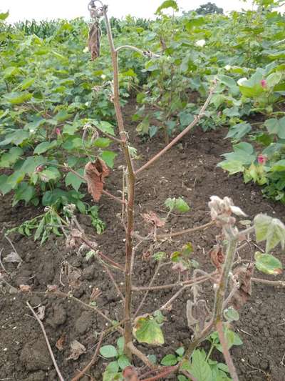 గత మూడు రోజుల ఉంచి అక్కడక్కడ పత్తి మొక్కలు ఎండిపోతున్నాయి,,ఎండిపోయిన దాని పక్కనున్న మొక్కలన్నీ ఆరోగ్యంగా ఎలాంటి రోగo లేకుండా ఉన్నాయ్
