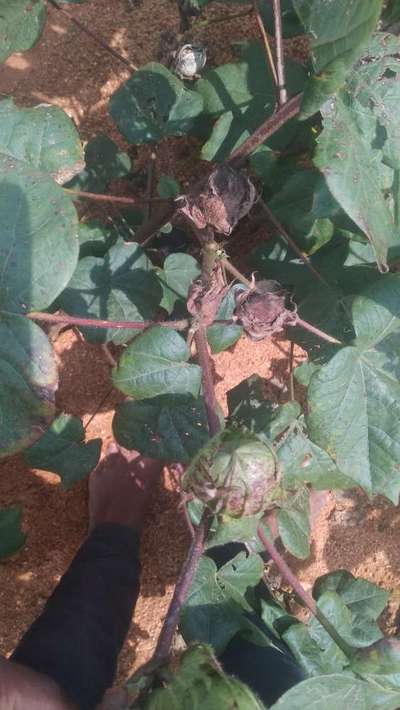 పత్తి ఆకులు ముడుచుకుంటూ ఆకుల చివరలు పసుపు రంగులోకి మారుతుంది.అక్కడక్కడా ఆకులు వివిధ రంగులోకి మారుతున్నాయి.దీనికి సరైన పరిష్కారాన్ని చెప్పండి