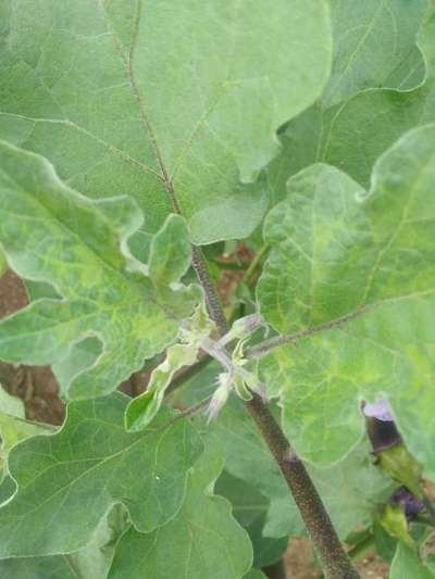 వంకాయ ఆకులు ఈ విధంగా ముడుచుకుని పోతున్నాయి ఏ మందు కొట్టమంటారు