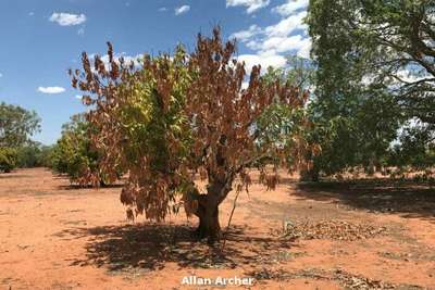 ఆకులు కొనలనుండి ఎండిపోతు పూర్తిగా ఆకు మొత్తం ఎండిపోతున్న ది .అటులనే కొమ్మ కూడా ఎండుతున్న ది.