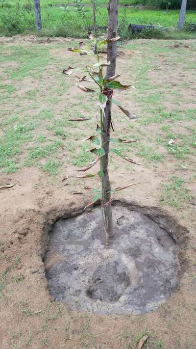 మొక్కలు నాటేటప్పుడు మొక్క వేర్లు కున్న కవరు తీసి గుంతలో పెట్టి గట్టిగా తొక్కాలి. మట్టి లూజుగా ఉండకూడదు.మొక్కలు నాటేటప్పుడు ఏదో పొరపాటు జరిగింది. అంతే గాని మొక్కలు నాటిన నెల రోజులకే పొటాషియం లోపం కనిపించదు.