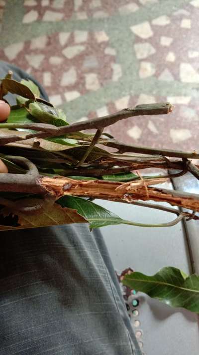 Dear Rajam how are you welcome to plantix community dear as per your image I suspected there is Mango Dieback Disease Mango Stem Borer attack