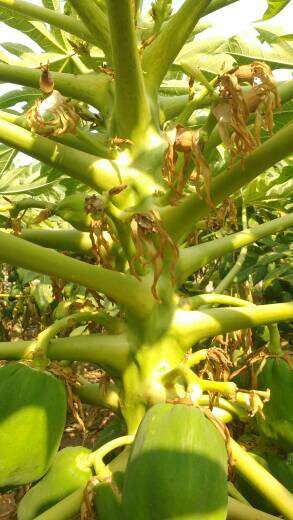 మన app లొ చెప్పినట్లు గులాబీ రంగు జిగురు బొప్పాయి కాయ నుండి కారుతుంది కాయ కుళ్లిపొతుంది. దానికి పై మందులలో ఏది spray చేయవచ్చు.