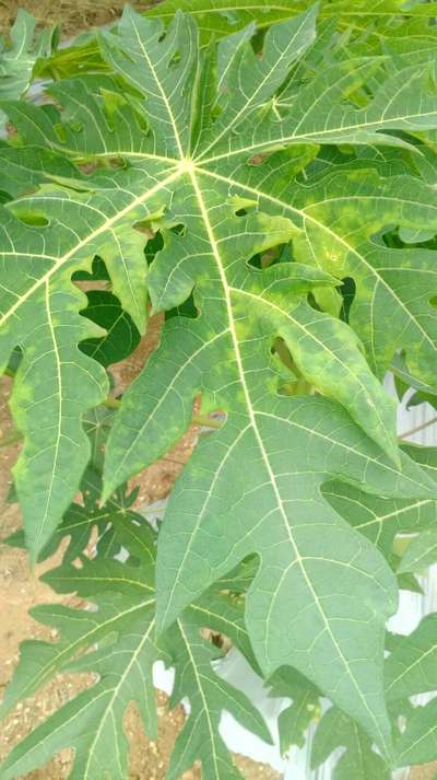 Hi Challagundla Ramam . It's also might associated with and looks like initial stage of Papaya Mosaic Virus . Let's check presence Aphid vector on plant different parts. If found take up control measures by clicking on green link given here, that is Aphids . Thanks for visiting.