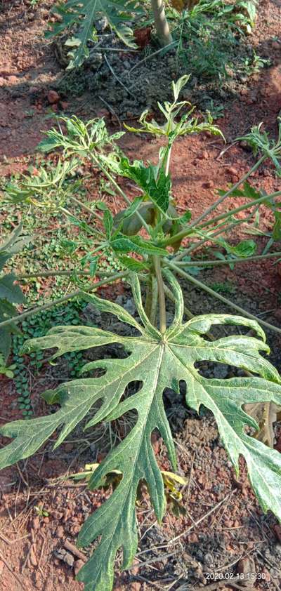 బొప్పాయి ఆకులు ఈ విధంగా ఈ రంగులోకి మారిపోయాయి దయచేసి ఇ కారణము తెలియజేసి నివారణ మార్గం చెప్పగలరు
