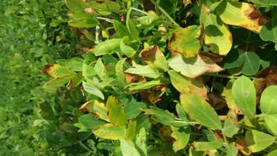 Panta vesina 60 rojulaki aaku pasupu ranguloki change ayyi avi complete ga brown colour loki change ayyi nirjeevamaipothunnnai. Kaya kooda lopala sarigga growth ledhu. Aa tegullu panta motham spread avuthundi. Present 70 days avuthundi. Deeniki saraina solution cheppagalarani aasisthunnam.