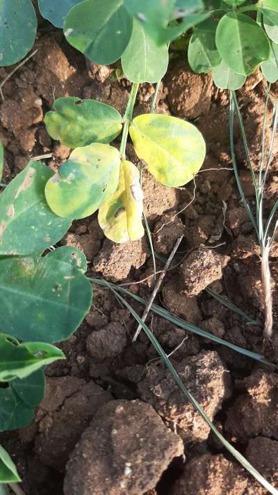 వేరుశనగ వేసి 15 రోజులు అయినది ఆకులు పచ్చ రంగులో మారుతునయె