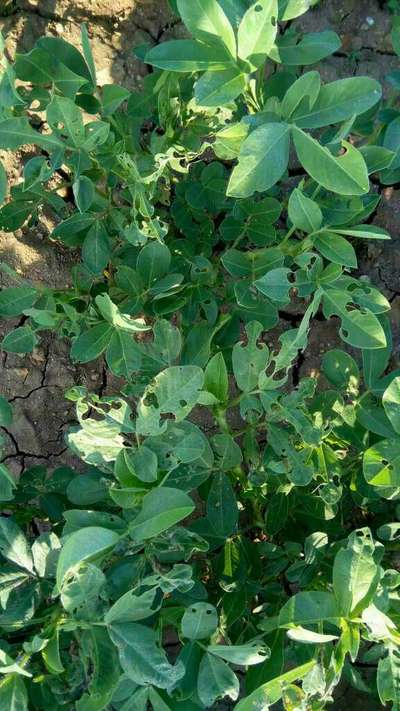 వేరుశనగ పంటలో ఆకులు తెల్లగా రావడం మరియు మచ్చలు చాలా ఎక్కువగా ఉండడం ఆకులు ముక్కలు ముక్కలుగా చేయడం ఈ రోగానికి దయచేసి నివారణ తెలుపగలరు