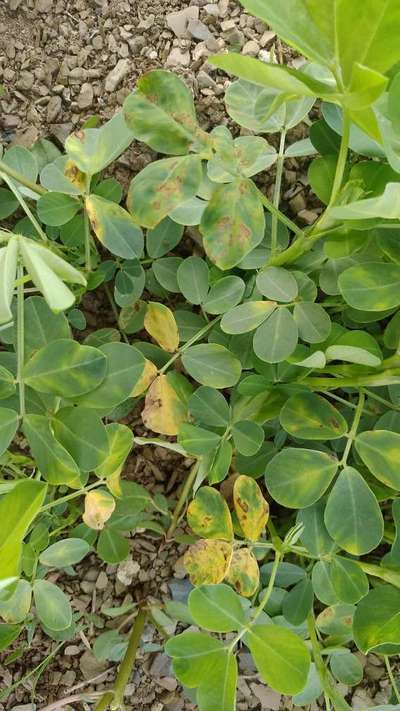 వేరుసెనగ పంట ఇలా పసుపు కలర్ రంగు లో కి ఆకులు మారుతున్నాయి...ఆకుపై బాగం ఎండి పోయినట్టు ఉండి ఇలా పసుపు రంగు లో కి ఆకులు మారుతున్నాయి