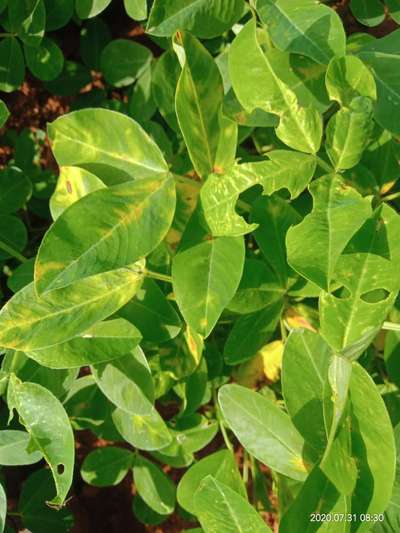 వేరుశనగ వేసి 15 రోజులు అయినది ఆకులు పచ్చ రంగులో మారుతునయె