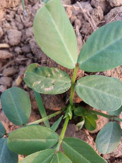 వేరుశెనగ వేసి 20 రోజులు అవుతుంది. ఇప్పుడు మొక్కల ఆకులపై ఫొటోలో చూపిన విధంగా ఉన్నాయి . దీనికి పరిష్కారం చెప్పండి.