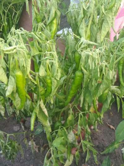 మిరప నారు వయసు 35 రోజులు. పైన చూపించిన విదంగా చిన్న,చిన్న గోధుమరంగు మచ్చలు ఏర్పిఢీ ముదురు ఆకులు పసుపు రంగులోకి మారి రాలిపోయి మొక్క చనిపోతుంది. దీనికి నివారణ ఎలా