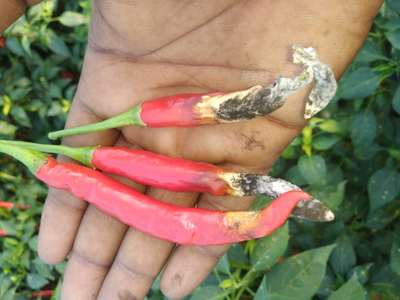 మిరపకాయలు , కుల్లి, నలుపు రంగు మారి. తల్లు అవుతున్నాయి.