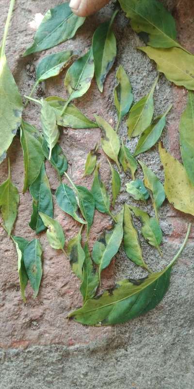 మిరప పంట లో ఆకులు ఈ విధముగా చెట్టు ఊపితే రాలిపోతునవి