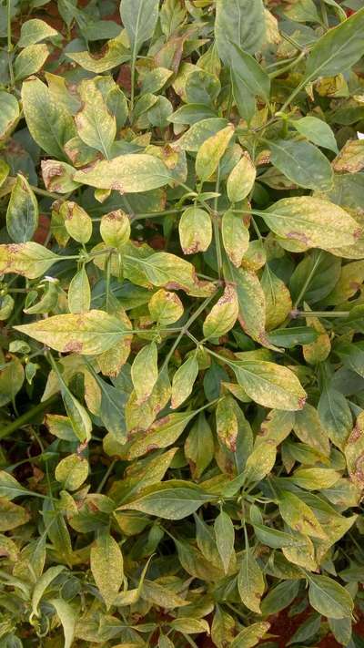 పచ్చి మిరప లో ఆకులు ఇలా మారుతున్నాయి ఏ మందు వాడాలో తెలుపగలరు