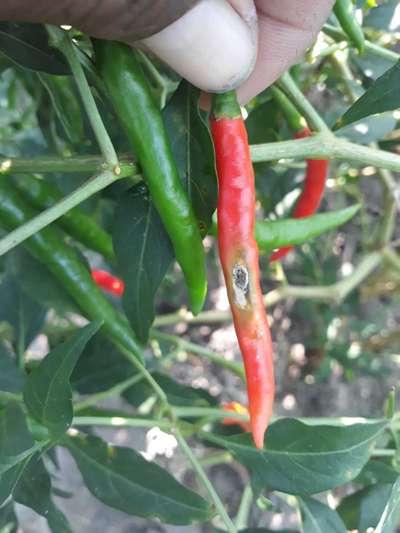 మా మిరప లో ఈ విధంగా కాయ మచ్చ ఎక్కువగా ఉంది ఏమి కొట్టిన కంట్రోల్ అవటం లేదు దయచేసి సరైన కెమికల్ తెలుపగలరు