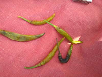 మా పంటలో పురుగు తినటం వలన మిరపకాయ ఇలా అవుతుంది