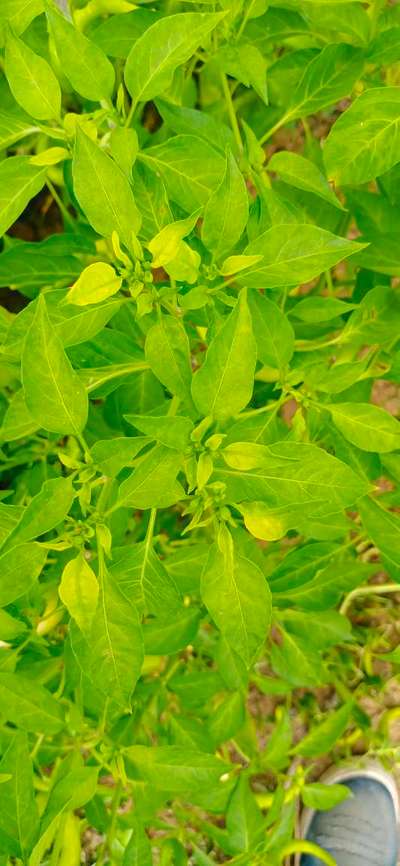 Plants are getting whitish @top. Green Chilli are in light yellow colour.some fruits are having pest biting marks, others don't have