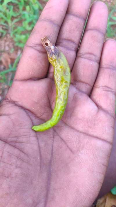 మిరప కాయలు ఇలా అవుతున్నాయి దయచేసి చెప్పండి వీటికి ఎం మందులు వాడాలో తెలుపగలరు ఈ మొక్కలు నాటి రెండు నెలలు అవుతుంది ఇంకా చెట్లకు పై ముడుత కూడ వుంది మొక్కలు సరిగా ఎదగడం లేదు