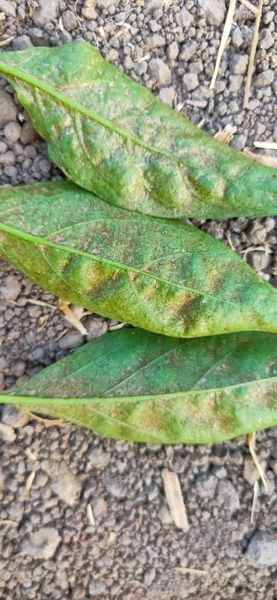 ముదురు ఆకులు అడుగు భాగం ఇటుక రంగులోను మరియు లేత ఆకులు తామర పురుగులు వల్ల పైకి ముడుచుకొని రాగి రంగు లో కనిపిస్తున్నాయ్ ..పూత లో కూడా నల్లని మరియు గోధుమ రంగు రెక్కల పురుగులు ఉన్నాయి ..