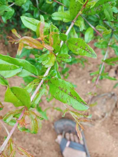 దానిమ్మ లో ఆకులు ఇలా మచ్చలు వచ్చింది ఏమైనా మందులు పిచికారీ చెయ్యాలి అంటారా చెప్పగలరు.
