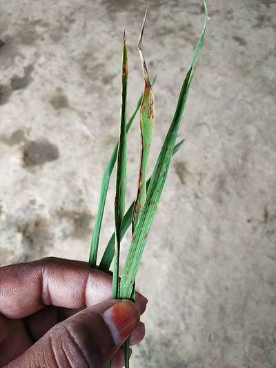 వరి పొలం ఎక్కువ ఎత్తు పెరగలేదు పొట్టకి వస్తుంది మరియు ఇలా మచ్చలు ఉన్నాయ్ ఆకూ చివరలు ఏండీ పోతున్నాయి ఈ సమస్య కి పరిష్కారం ఏంటి సూచనలు చెప్పగలరు మరియూ ఇప్పుడు పొలం కి పోటాష్ యూరియా చల్ల మంటారా