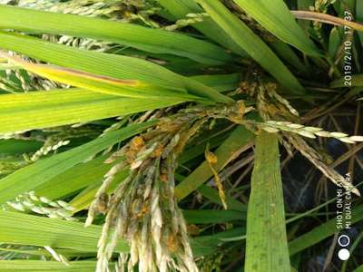 గింజ ఎర్రగా మారుతుంది, తాలు గా ఏర్పడుతుంది, చేనూలొ అక్కడక్కడ వుంది, ఎం చెయ్యాలి