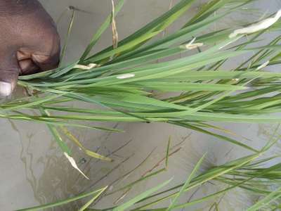 వరి యొక్క ఆకు కొనా నుండి తెల్లగా మరియు అక్కడక్కడ పసుపు రంగులో మారి వరి చనిపోతుంది, నాటు వేసి 18 రోజులు అవుతుంది; నిన్న అనగా 17 రోజులకు గంట గొలుకలు మరియు యూరియా కళిపి( MIX) చేసి చల్లిన ... దీనికి తగిన పరిష్కారం చెప్పగలరు