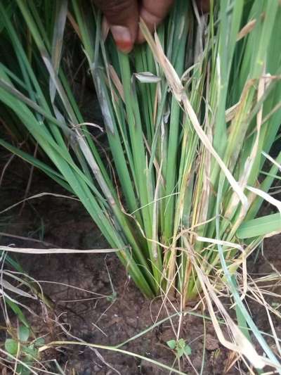 ఆకులు ఎండిపోయిన ట్టుగా వున్నాయి 20 రోజు లు నాటు పెట్టి చేను మొత్తం ఇలాగే అవుతుంది 2ఎకరాలు కు ఏమందు కొట్టాలి సలహాలు చెప్పండి యూరియా వేసిన కలుపు ఇంకా తీయలేదు 5రోజులు అవుతుంది పొలం లో వాటర్ తీసి మందు కొట్టాల లేక మాది amrp ప్రాజెక్ట్ కింద కాలువ నీళ్లు ఎక్కువగా పొలంమీదంగ వెళ్తాయి .