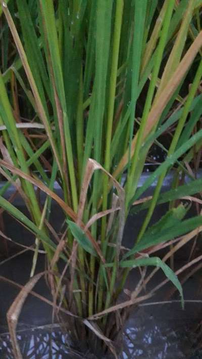 వరి యొక్క ఆకు కొనా నుండి తెల్లగా మరియు అక్కడక్కడ పసుపు రంగులో మారి వరి చనిపోతుంది, నాటు వేసి 18 రోజులు అవుతుంది; నిన్న అనగా 17 రోజులకు గంట గొలుకలు మరియు యూరియా కళిపి( MIX) చేసి చల్లిన ... దీనికి తగిన పరిష్కారం చెప్పగలరు