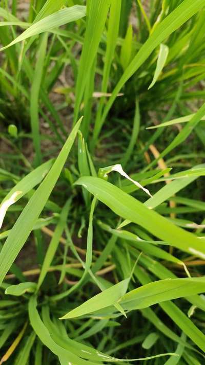మా వరి ఈనుతున్నది, అదే సమయంలో మొదలు దగ్గర కింది ఆకులు ఎండి పోతున్నాయి.