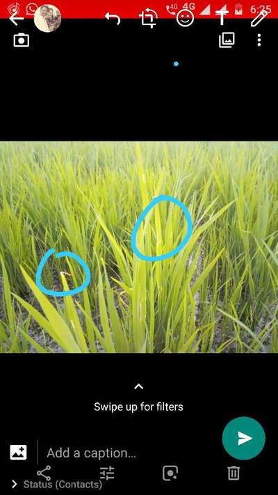 వరి పొలం లో అక్కడక్కడ కంకి లోని గింజలు తెలుపు రంగులో మారుతున్నాయి.