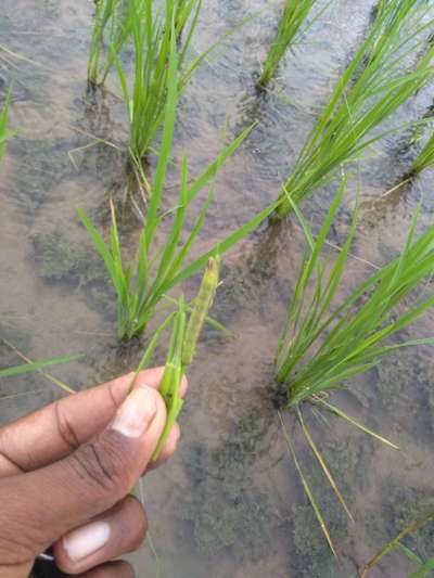 Vari nati 18days avuthundhi....vari lo e vidhan ga some places paccha (green) purugu undhi....em chemical vadavantaru... Rain falling in my crop area from 3 days to till now....