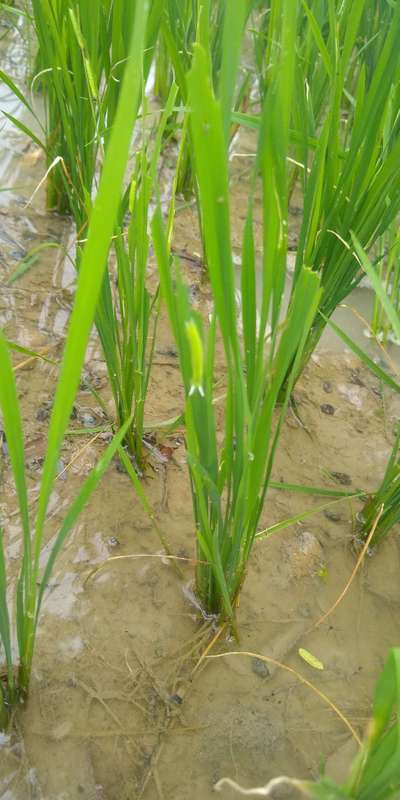 వరి ఆకు మధ్యలో తెల్లటి మచ్చలు వస్తుంది. దీనికి గల కారణం తెలుపుతూ, పరిస్కారం తెలపండి