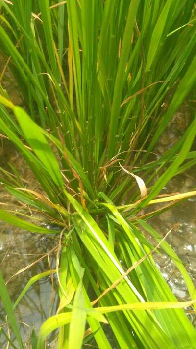 Bpt రకం వరి నాటు పెట్టి 26 రోజులు అయ్యింది.పై విధంగా ఆకులు చుట్ట చుట్టుకొని ఎండి పోతున్నాయి.ఈ సమస్యకు దయచేసి పరిష్కారం చెప్పగలరు.