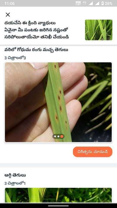 వరిలో గోధుమ రంగు మచ్చ తెగులు హాయ్ Morampudi Ramarao, Chinnamalllela Carbendazim or hexaconazole వాడండి