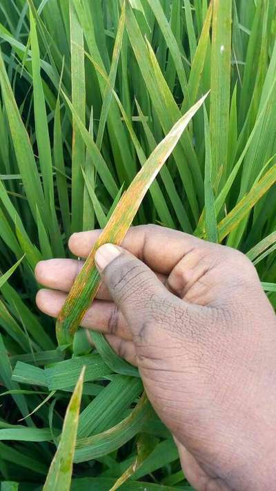 Hi Gurram Srinivasa Rao ఇది Bacterial Leaf Streak ల ఉంది. Plantomycin 100gms+Blitox50W 600gms లను కలిపి ఒక ఎకరానికి స్ప్రే చేయండి 🌾