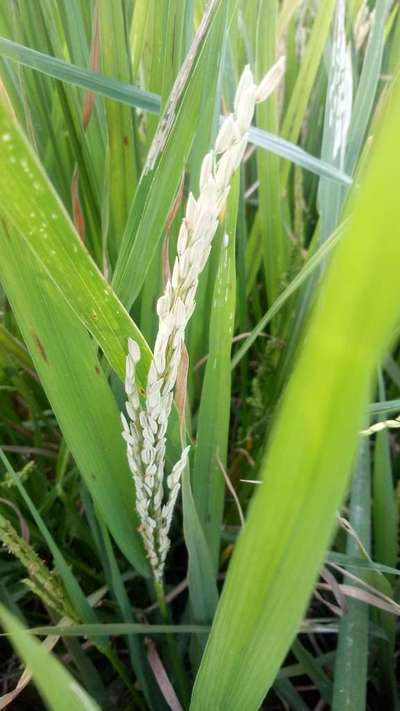 వరి గింజలు పాలు పోయకుండానే వరి కంకి మొత్తం ఇలా ఎండిపోతుంది. ఏయే మందులు కొట్టాలో సూచించండి 🙏🙏🙏