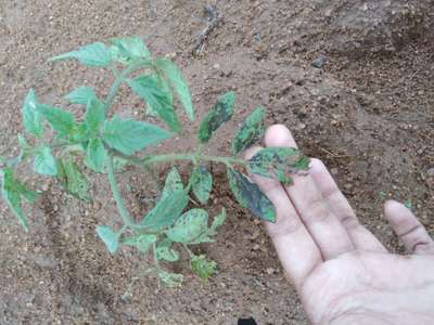 its tomato spotted wilt virus problem first remove affected plants ...install blue sticky trap to control thrips and spray. Rogar 2ml per lt