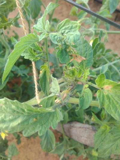 టమోటా లో ఈవిధమైన రోగానికి ఎం చేయాలి..చిన్న చి న్న పురుగు కూడా వుంది