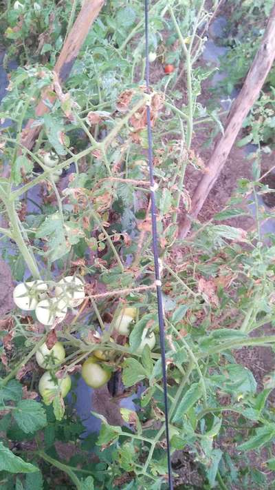 టమోటా చెట్టు ఆకులు ఇలా ఉన్నాయి ఎందుకు ఇది మూకు ఏకువాగా వుంది ఈరోగానికీ మందులు వాడాలి