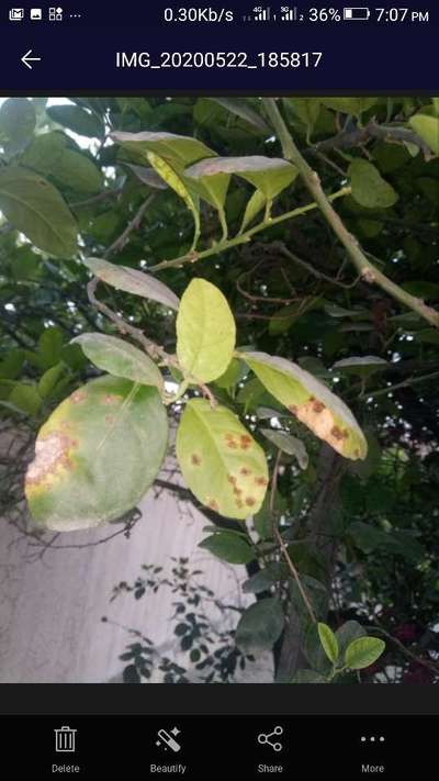 Asif Ali جناب یہ آپ کے پودون پر پھپندی اور جراثیمی بیکٹئیل سے پھیلنے والی بیماری جیسے Anthracnose of Citrus Citrus Canker لگی ہوئی ہے۔ آپ پودوں پر کاپر آکس کورائیڈ کا سپرےکروائیں