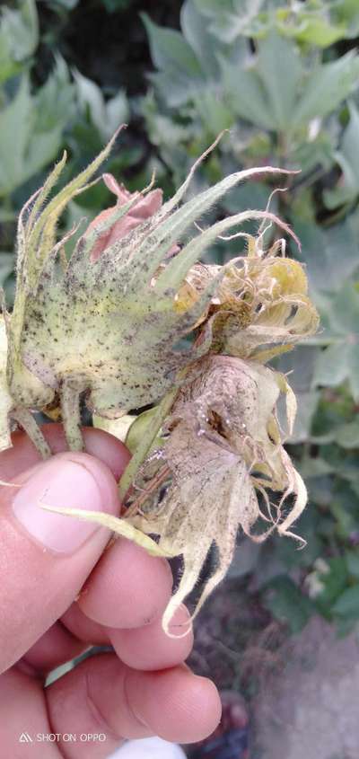 Ak Chachar جناب آپ کی بھیجی گئی تصویروں کا بغور مشاہدہ کے بعد یہ معلوم ہوا ہے کہ آپ پودے پر یہ جو سیاہ مائل رنگ لگا ہوا ہے یہ دراصل پھپندی کے حملے ک وجہ سے ہے۔ یہ پھپندی فصل میں رس چوسنے والے کیڑوں یا زیاد نمی مطلب پانی لگانے کی وجہ س زور پکڑتی ہے۔ پھول کا گراؤ زیادہ نائٹروجن ؤالی کھاد، زیادہ پانی ، بورون کی کمی بشمول دیگر موسمی حالات جیسے زیادہ درجہ حرارت کی وجہ سے ہوتا ہے۔ ابھی پریشان نہ ہوں میں آپ کو اسکا حل بتا دیتا ہوں۔ سب سے پہلے پودوں پر نیم آئل کا سپرے کروائیں۔ نیم آیل مکھی تیلے اور پھپندی کو مار دےگا۔ ا لیٹر فی ایکڑ کے لیے کافی یے۔ یہ بازار سے کھلا پنسار کی دکان سے مل جائے گا۔ کیوں کہ آپ پہلے پانچ سپرے کر چکے ہیں زیادہ سپرے سے فصل سٹرس میں آ جاتی ہے۔
